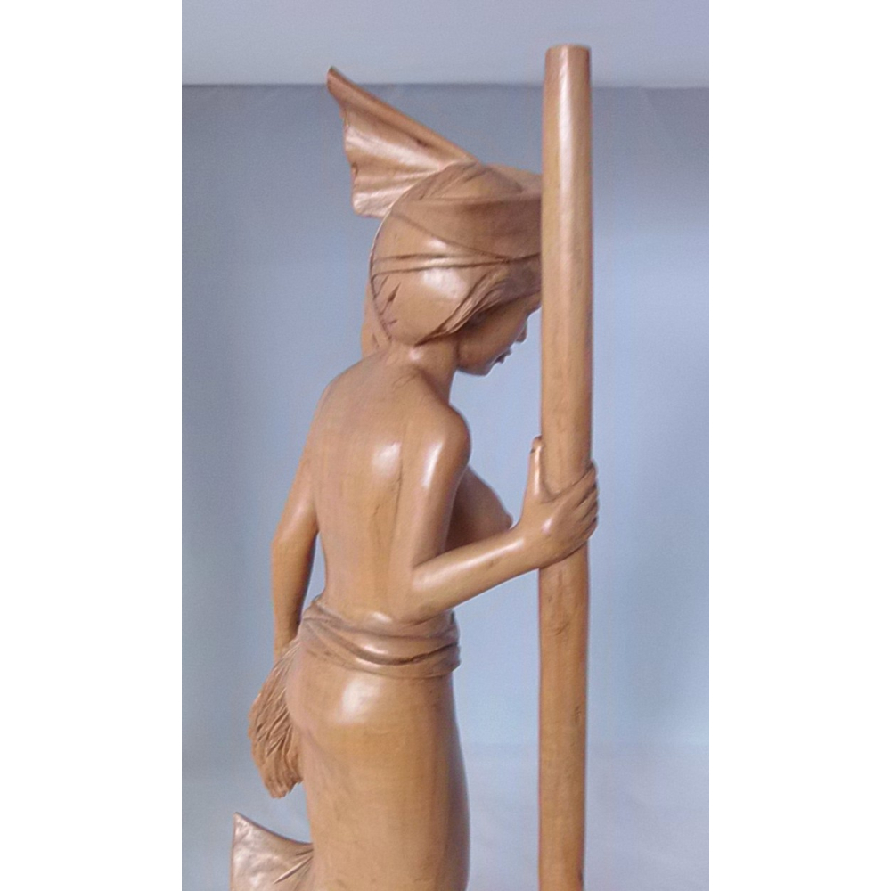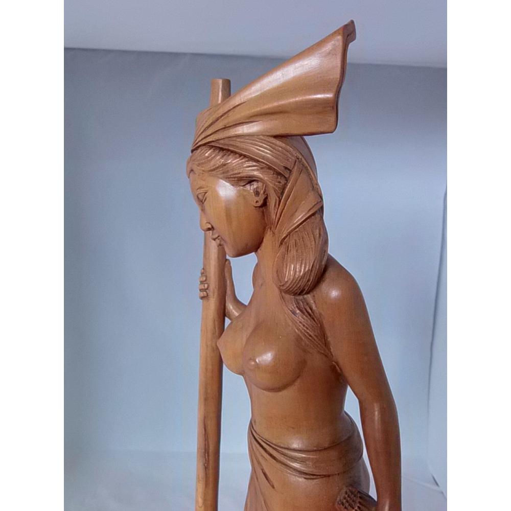 Een Balinese schone, hoogstaand houtsnijwerk. Vermoedelijke gemaakt in eerste helft 20ste eeuw. De totale hoogte van het beeld is 53cm.