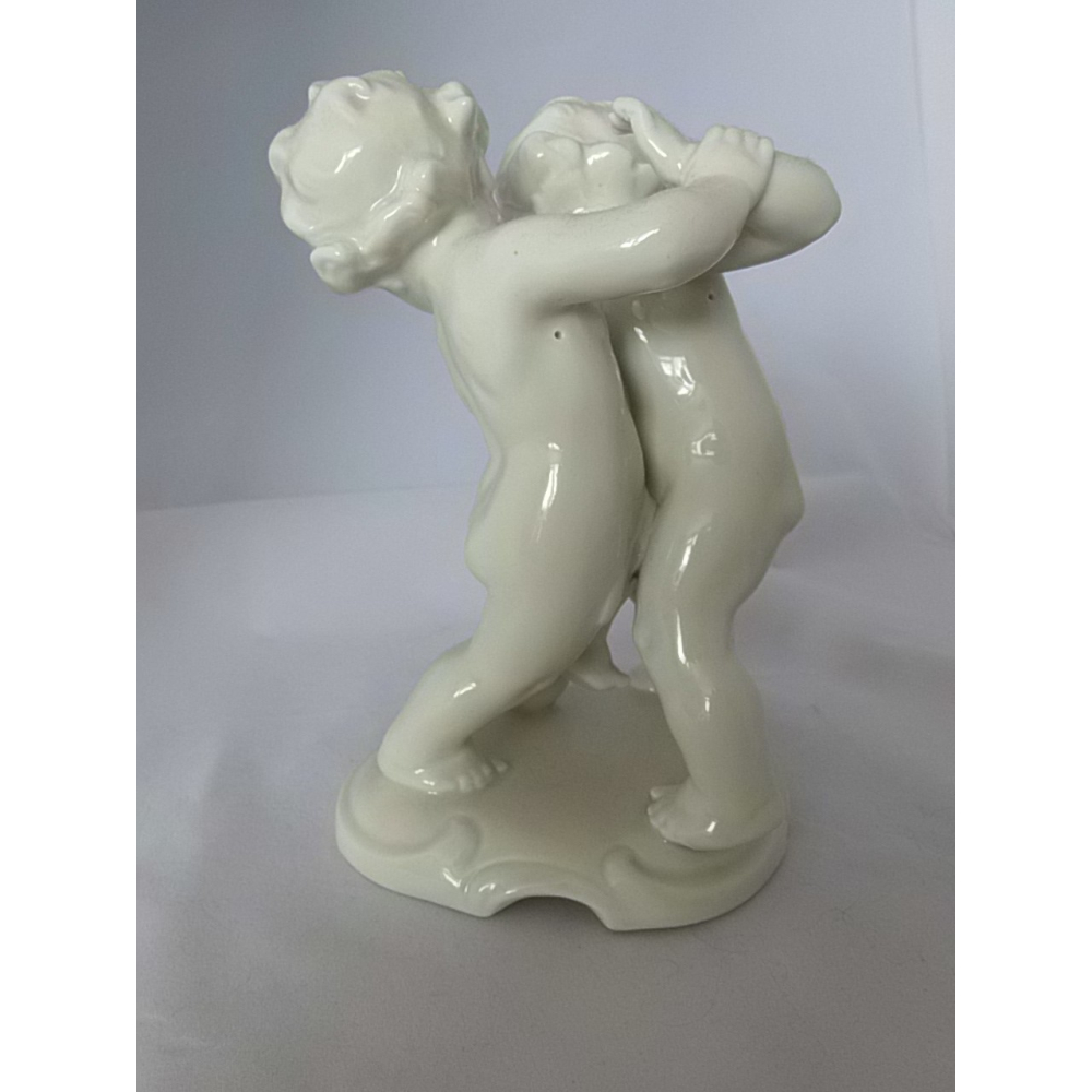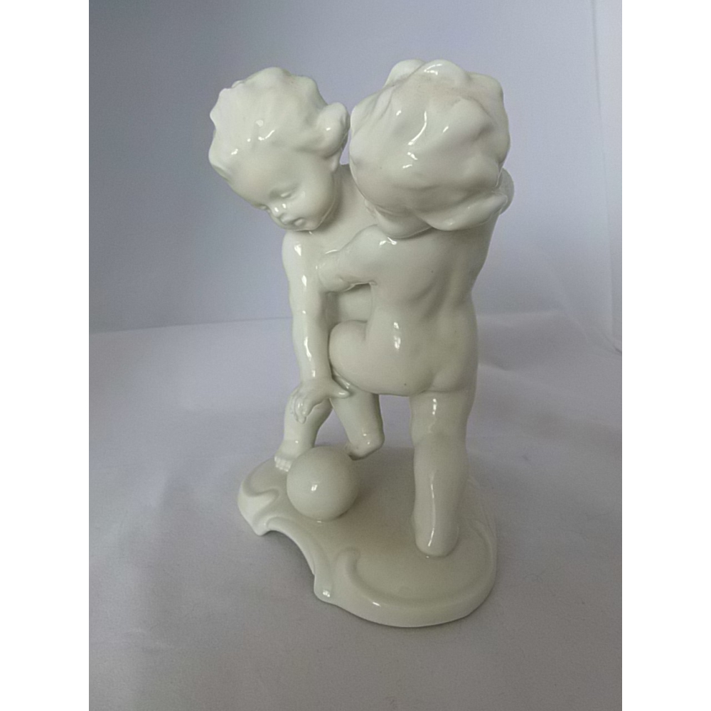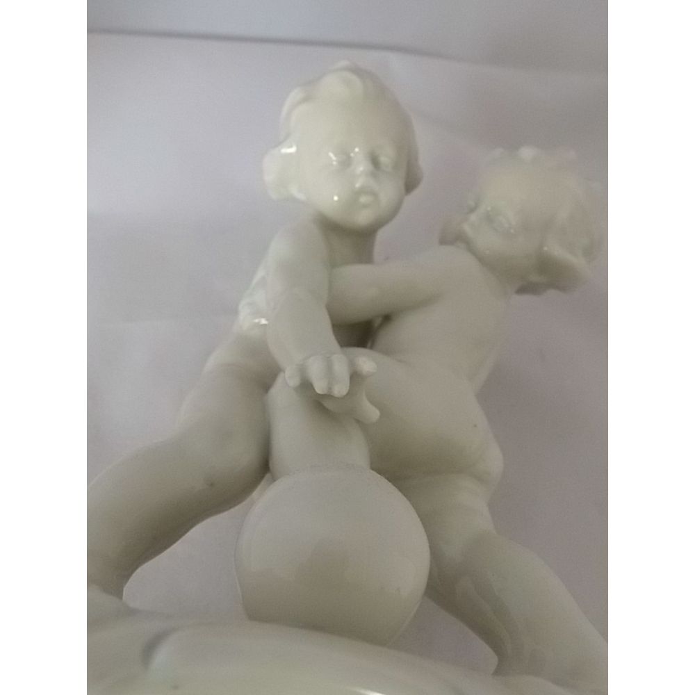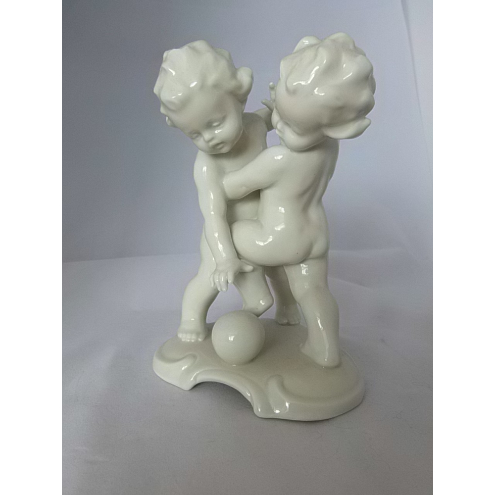 Bengeltjes aan het worstelen om de bal, hoe vermakelijk om naar te kijken. Prachtig gemaakt, puntgaaf en 19cm hoog.