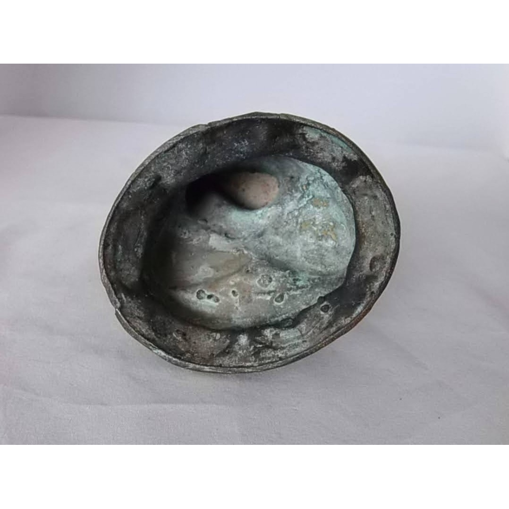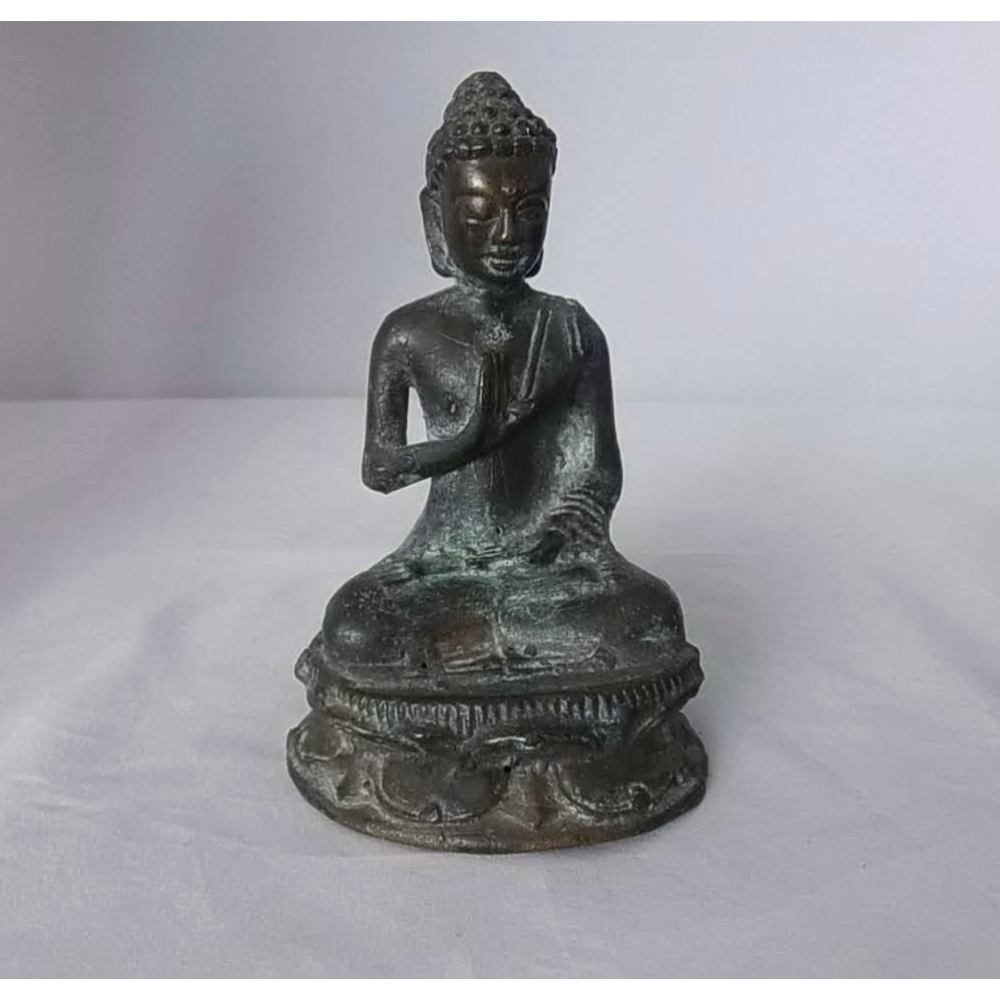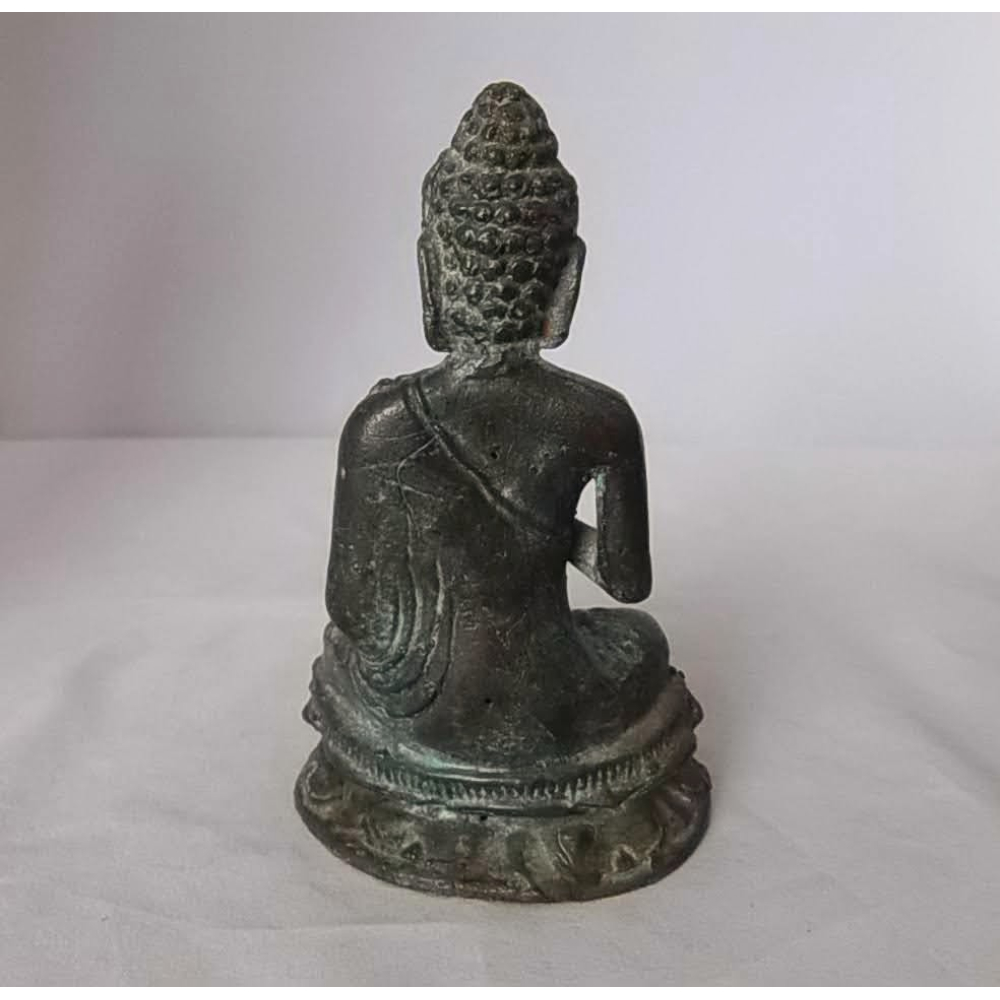 Een antieke Boeddha in brons met een prachtige originele patinee. 19de eeuw of ouder, 14cm hoog.