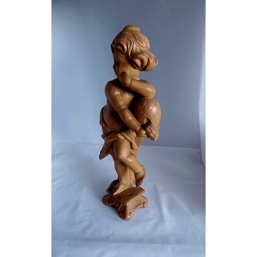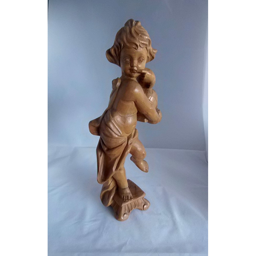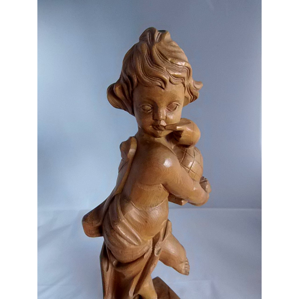 Prachtig houtsnijwerk van een cherubijn. Ik vermoed uit een licht vruchtenhout soort en in Duitsland gemaakt. Het is 41cm hoog.