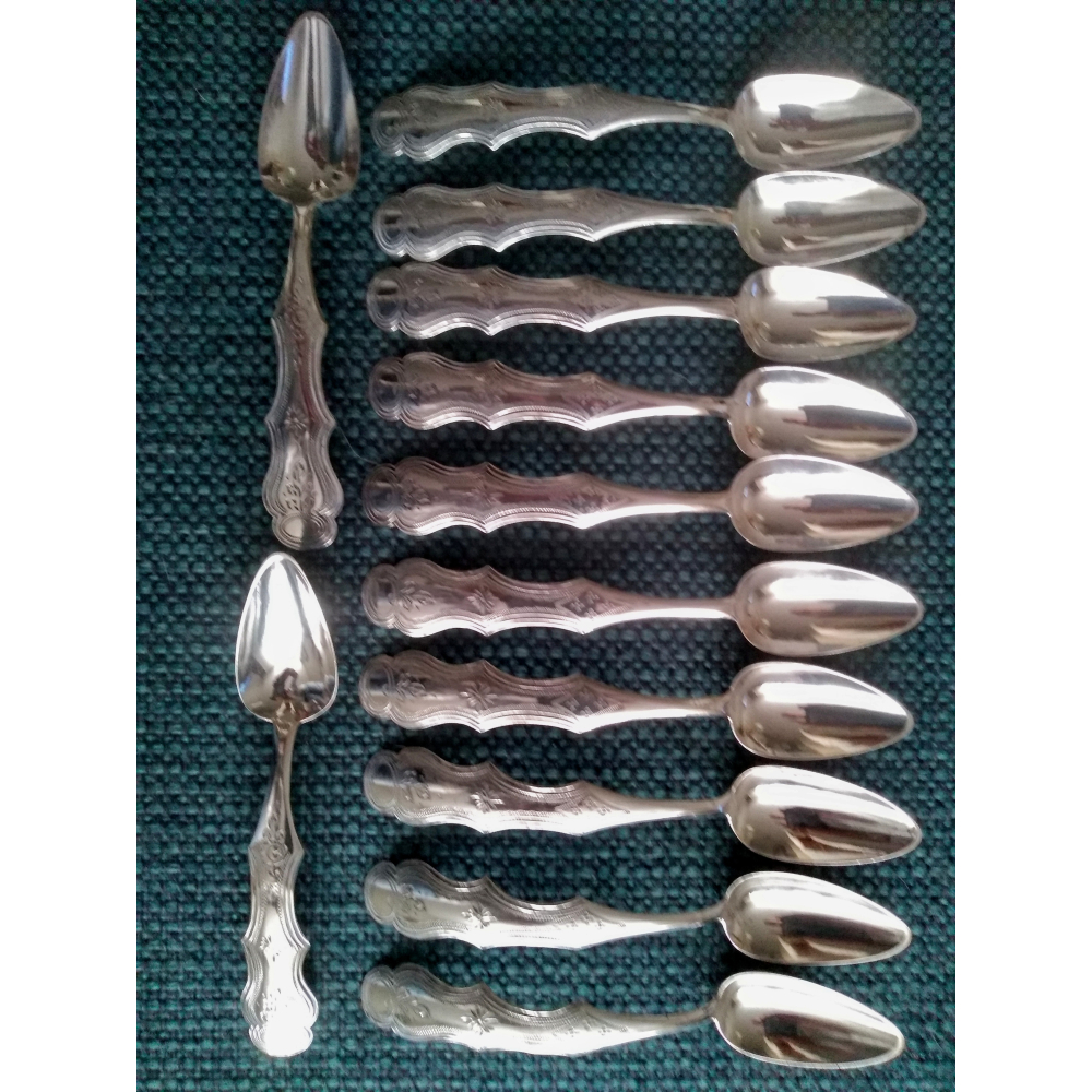 10 zilveren koffielepeltjes em 2 goed bijpassende maar iets afwijkend patroon