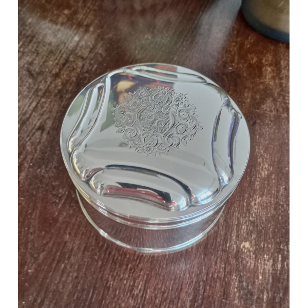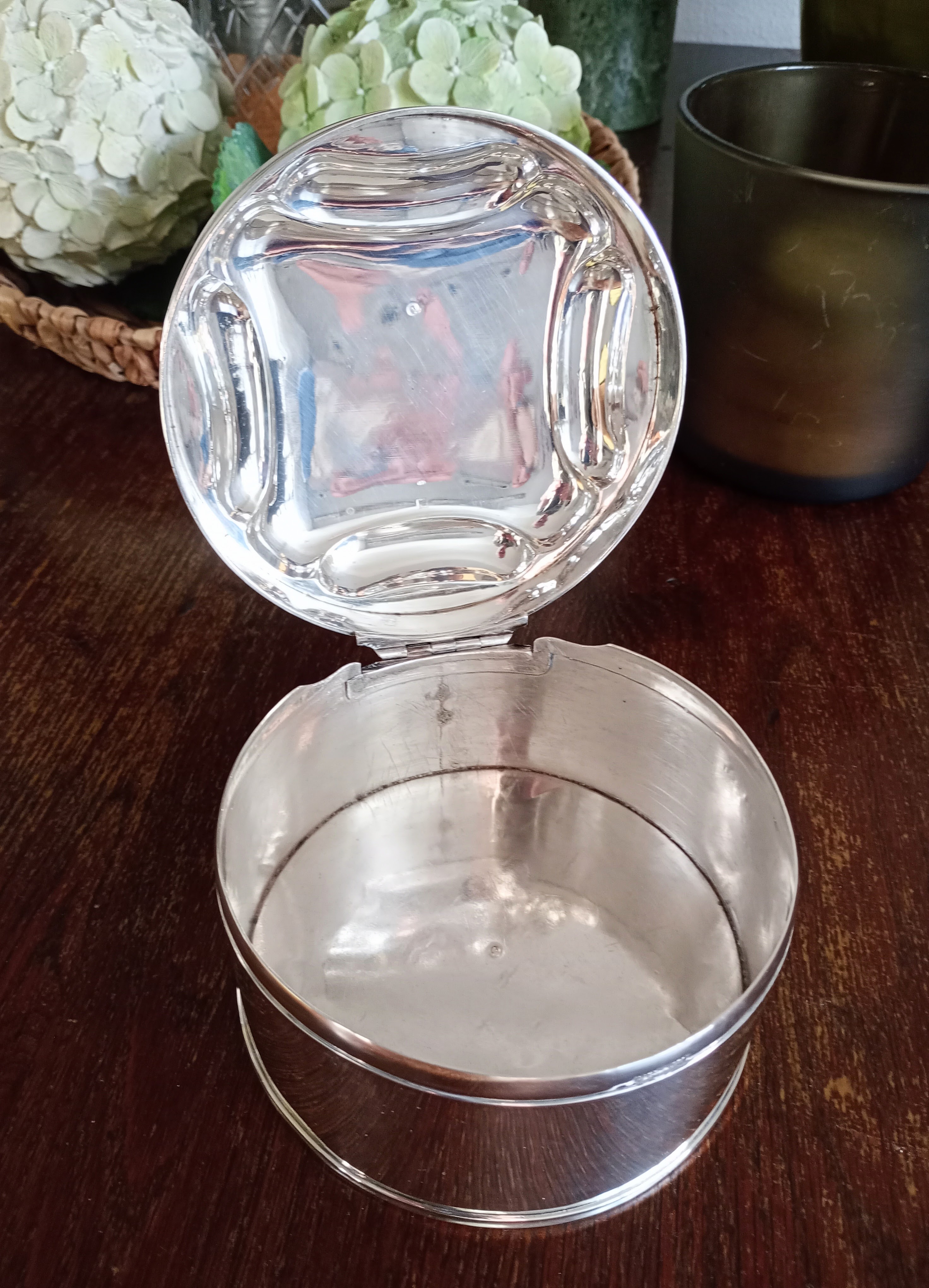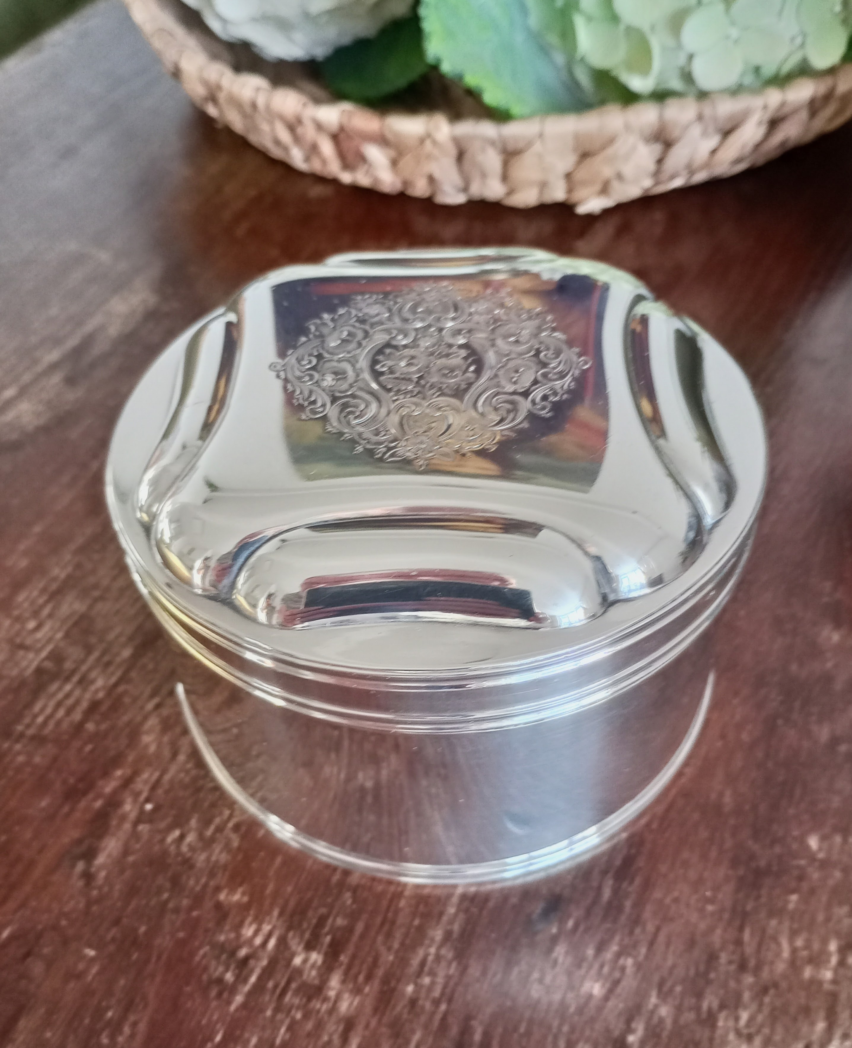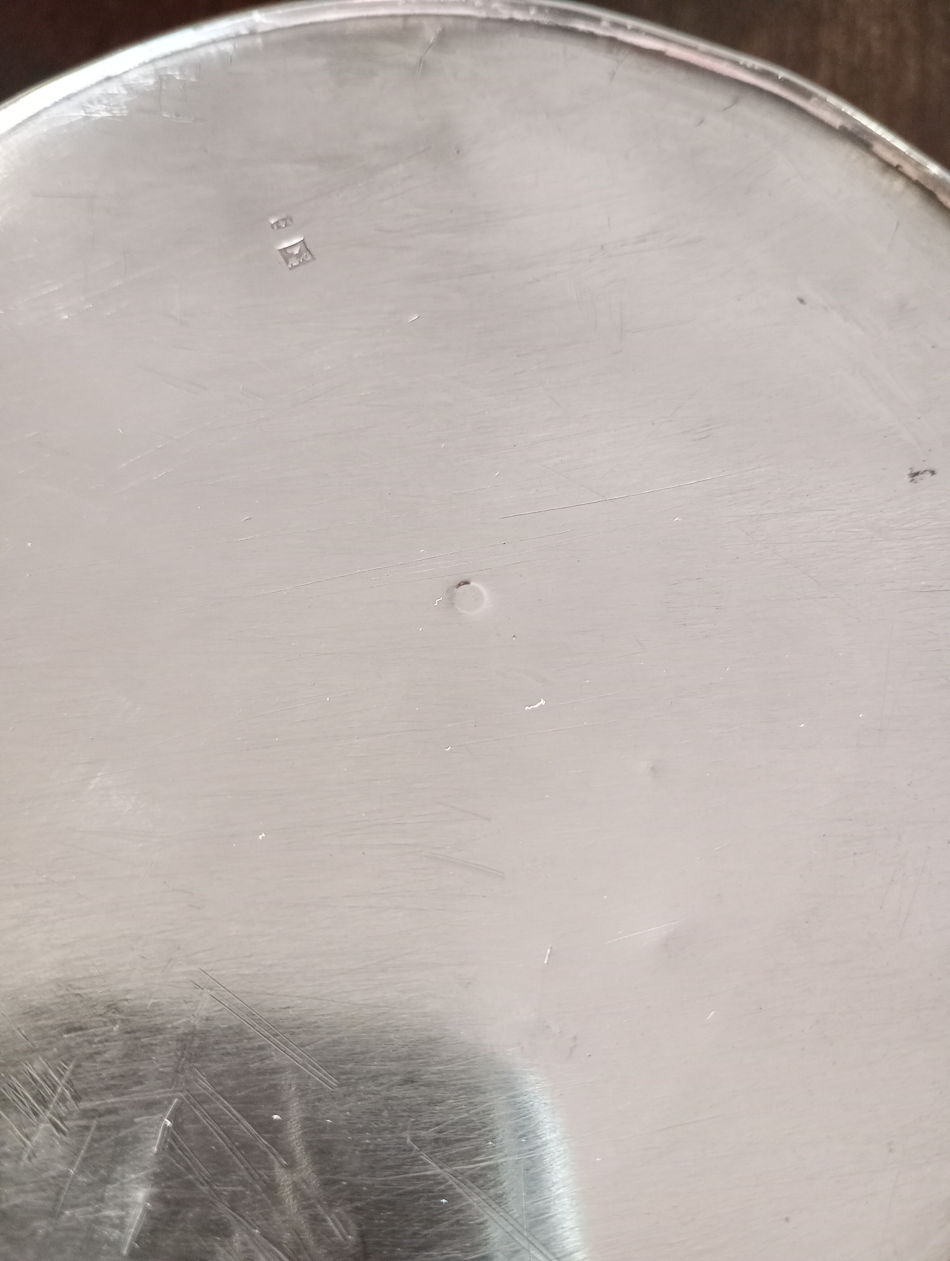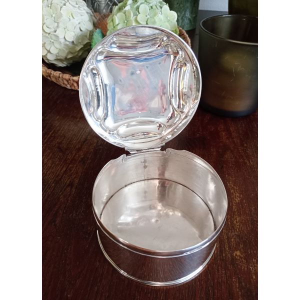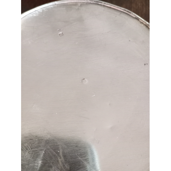 Ronde zilveren biedermeier koektrommel met opgehoogde deksel, versierd met floraal graveerwerk, anno 1855, meester: Abraham Bernard van Grasstek, Amsterdam, diameter 13 cm., gewicht 315 gram