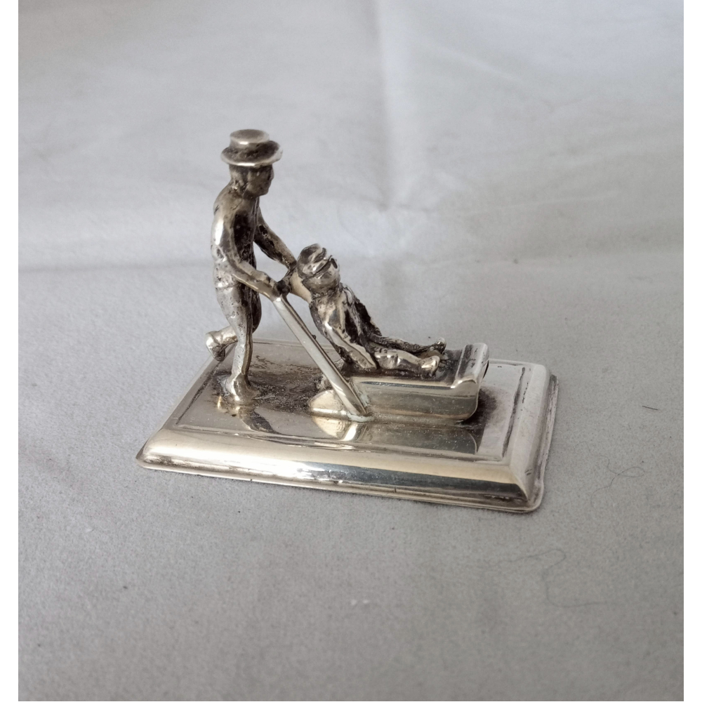 Een wat oudere miniatuur. 18gram zwaar en voet is 4,5cm bij 2,3cm de hoogte in 3,3cm. Makersteken en zwaardje gemerkt.