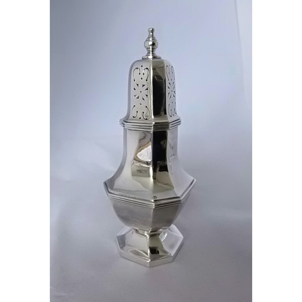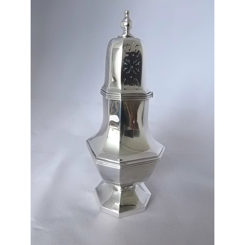 Een balustervormige zilveren strooibus 2e gehalte, h. 17.5 cm.