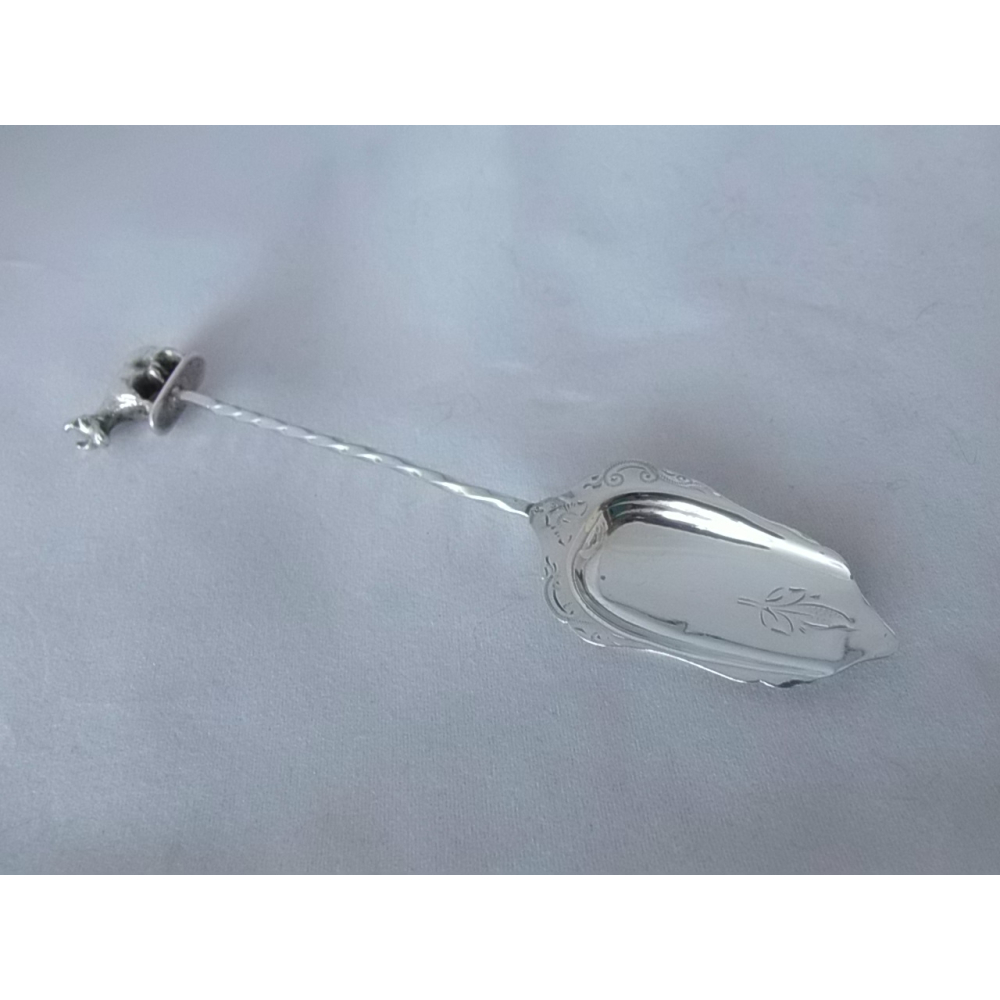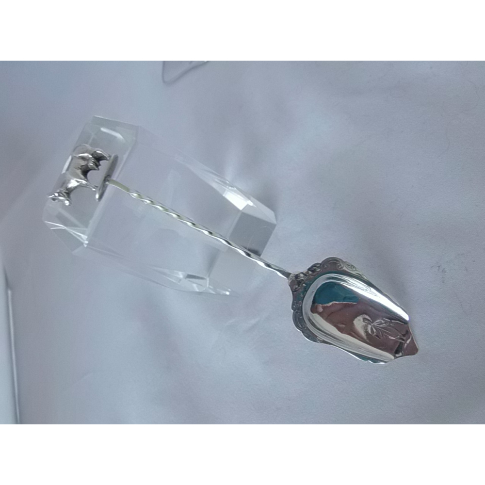 Antieke suikerlepel met zilveren koe, lepel is vroeger samengesteld.
